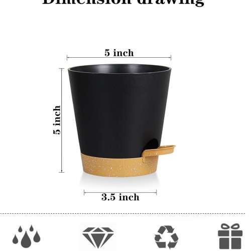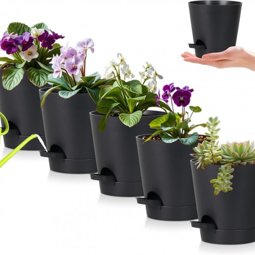 5 Pack 5 inch Self-Watering Pots, African Violets Planter with Drainage Holes and Reservoir, Black Brown Plastic Planter for Indoor Outdoor Plants Flowers and Houseplants black brown, 5 inch 5 pcs