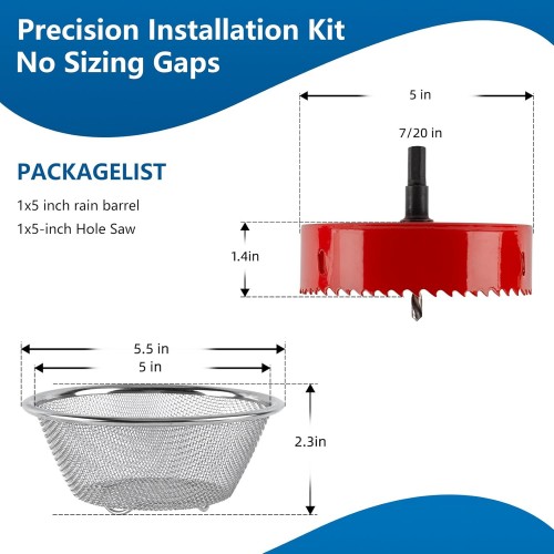 5″ Rain Barrel Screen Filter with Hole Saw – Aluminum Mesh Cover DIY Kit for Rainwater Collection System (rain Barrel Diverter kit) (rain Barrel Diverter kit)