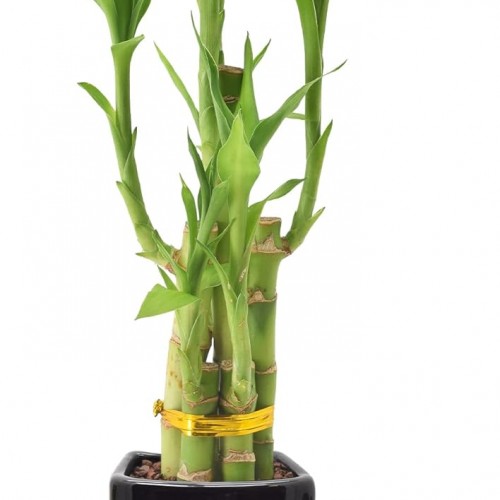 5-Stem Lucky Bamboo, Live Indoor Plant in Dimension II Ceramic Planter for Home, Work, or Gift, Tan ***Cannot Ship to Hawaii***