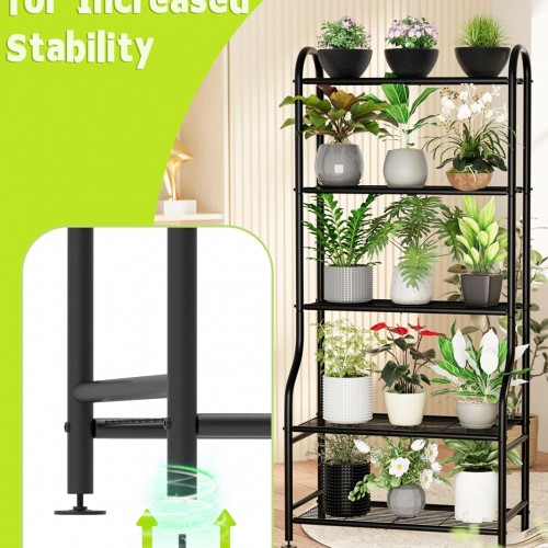 - SPACE-SAVING – Say goodbye to clutter and limited floor space! This outdoor indoor plant stand has 5 open shelves, each holding up to 40 LBS, with a total height of 65 inches and a width of 25.6 inches per tier, providing plenty of room for all your needs.