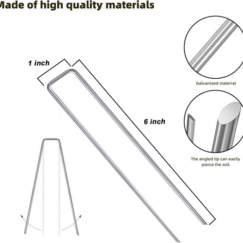 - 【Excellent Material】: Garden stake pins are made of high-quality galvanized iron, lightweight, durable, rust-proof, wear-resistant and not easy to bend, it can be reused many times. U-shaped design of landscape staples 6 inch, it can save you valuable time and frustration.