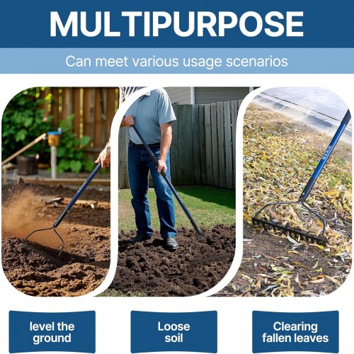 - Multi Purpos:Garden rake built to take on the toughest jobs.It’s been extremely useful in cleaning out and spring-prepping the flower beds,it allowed you to scoop up the dead leaves and other debris while at the same time scraping into the underlying dirt,prepping the surface for upcoming leveling,mulching,and planting annuals.This is one of those gardening tools that will last a lifetime.