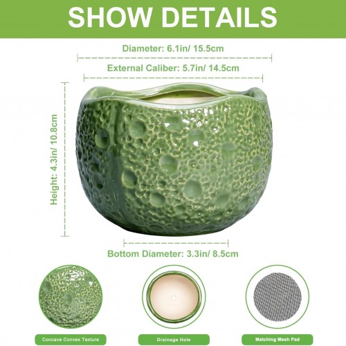 6 Inch Plant Pot – Orchid Pot with Drainage Hole, Ceramic Planter for Indoor Outdoor, Decorative Plant Pots, Modern Round Unique Flower Pots, Living Room Decor, Gifts for Women Men, Green