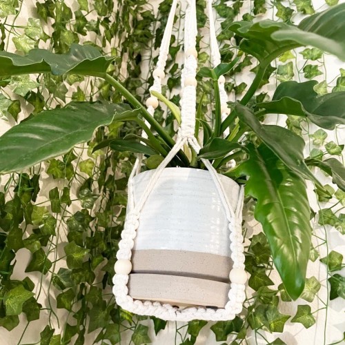 6 Inch Plant Pots, Ceramic Planter Pot with Drainage Hole & Saucer, Indoor/Outdoor Cylinder Round Planter Pot, White & Beige Glaze