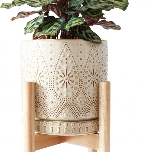 6 Inch Retro Ceramic Planter Set of 2 with Drainage Hole and Saucer for Plants, Indoor-Outdoor Garden Pots for Succulent, Orchid, and Flower (Fits Inner Pots Up to 5 Inches, Retro Peach)