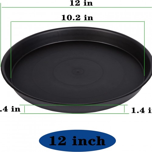 6 Pack of 12 inch Plant Saucer, Heavy Duty Plastic Plant Saucer 12 inch Round, Plant Tray for Pots, Flower Saucers for Indoors, Garden Plate Bowls, Trays for Planter 10″/11″/12″ (Black)
