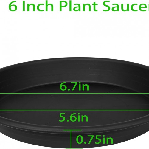 6 Pack Plant Saucer Plant Tray, 4 6 8 10 12 13 15 17 19 inch Plant Trays for Pots, Heavy Duty Plant Trays for Indoors no Holes, Plastic Plant Saucer for Planter, Bird Bath Bowls (6″, Black)