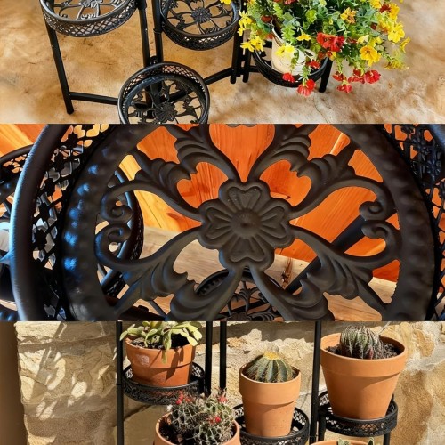 - 【Durable Wrought Iron & Power Coated】The metal iron plant stand is constructed entirely from sturdy wrought iron for strong load-bearing capacity and stability, the wrought iron plant stand is finished with a waterproof and rust-resistant baking paint【STURDY LEGS SUPPORT STRUCTURE】The heavy duty flower display holder shelf is designed for ultimate stability, the center pole does not touch the floor, while the outer legs form a secure triangular base by a triangular base with a suspended center pole and non-slip caps on each leg to prevent scratches and slipping & make it ideal for both indoor use on house, living room, office and outdoor use on patio, balcony, garden or porche