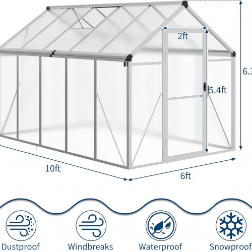 6 x 10 FT Greenhouse, Greenhouses for Outside, Polycarbonate Greenhouse with Aluminum Frame, Lockable Door and Ajustable Roof Vent for Backyard, Green Houses for Outside Garden Backyard, Patio