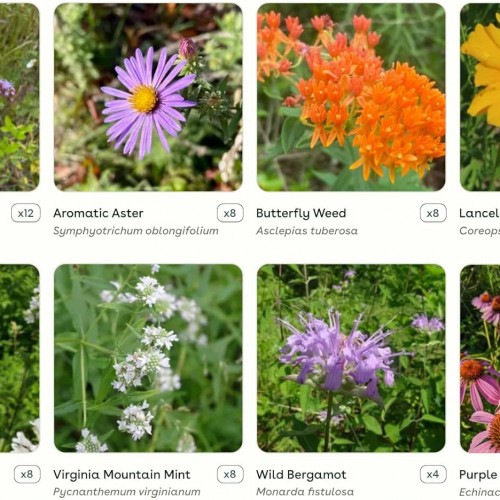 64 Outdoor Plants – Flowering Garden for Full Sun to Support Pollinators Including Perennial Native Plants Purple Coneflower, Butterfly Milkweed, Wild Bergamot and Smooth Blue Aster