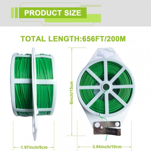656ft/200m Twist Ties for Plants, Garden Twine for Climbing Plants & Outdoor Use, UV Resistant Plant Ties with Cutter, Garden Wire/String/Ties for Vines, Shrubs, Home & Office Organizing