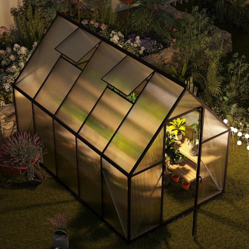 6×10 FT Greenhouse for Outdoors, Polycarbonate Greenhouse with Roof Vent, Enhanced Aluminum Large Walk-in Green House for Garden Backyard