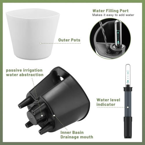 - Many self-watering pots do not have any drainage system, which can quickly lead to root rot. GS Garden’s pot set has a unique support design that separates the plant’s roots from the water storage layer, and promotes root growth and development through the micro-pores at the bottom of the inner, thereby creating root oxygen circulation.