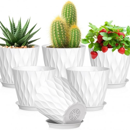 - 【Modern Wave Texture Design】With a simple modern aesthetic and a clean matte finish, this set of 5 flower pots features a 3D wave-like texture, adding a touch of elegance to any space. Perfect for starting seedlings, or home/office decor, these pots for plants are ideal for gardening