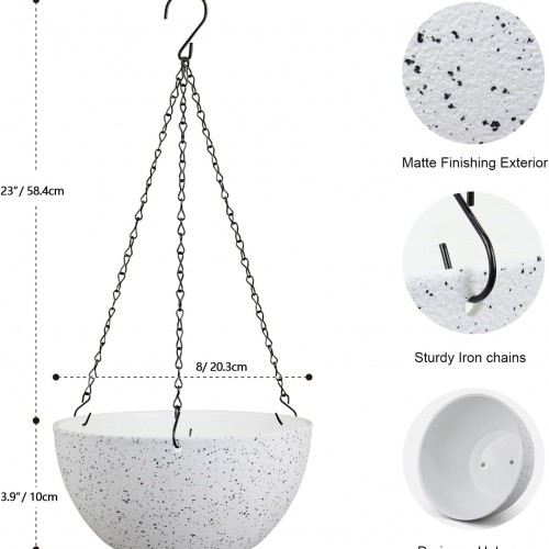 8 inch Hanging Planters for Small Indoor Outdoor Plants, 2 Pack Hanging Flower Pots with Drainage Holes and Chain for Garden Porch, Plastic Hanging Baskets for House Plants, Speckled White