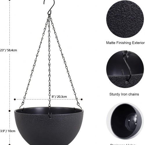 8 inch Small Hanging Planters Plant Pots for Indoor Outdoor Plants, 2 Pack Hanging Flower Pots with Drainage Holes and Chain for Garden Porch, Plastic Hanging Baskets for House Plants, Black