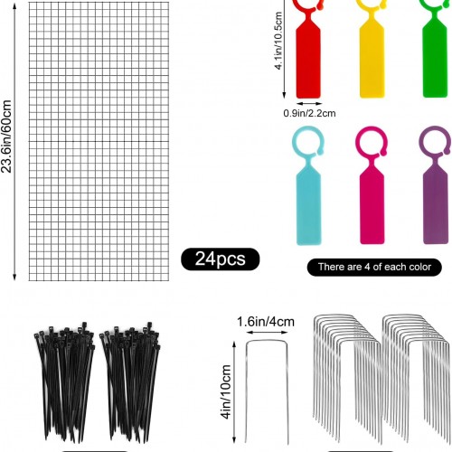 - What You Will Get: Package include 24 square metal plant protection mesh, 24 fixing stakes, 24pcs labels and 100 black strapping straps, you will get enough value for money, with enough quantity for your daily use and replacement, saving you time and money on buying again. Our metal garden protection cage will effectively protect your plants from critters and provide a safe space for your plants to grow.