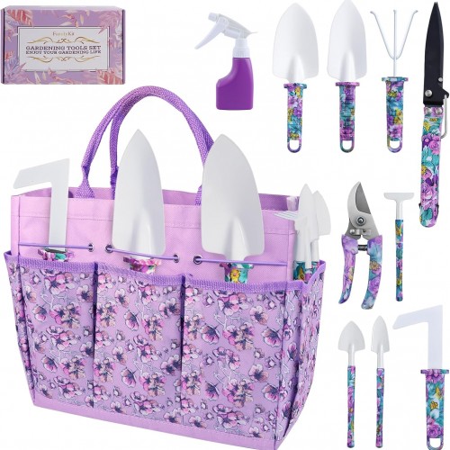 8-Piece Heavy-Duty Gardening Tools with Ergonomic Handles and Storage Bags Make A Wonderful Gift for Parents