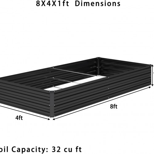 8x4x1ft(2 Pack) Galvanized Raised Garden Bed,Outdoor Planter Box Metal Patio Kit Planting Bed for Vegetables Flowers Herb,Black