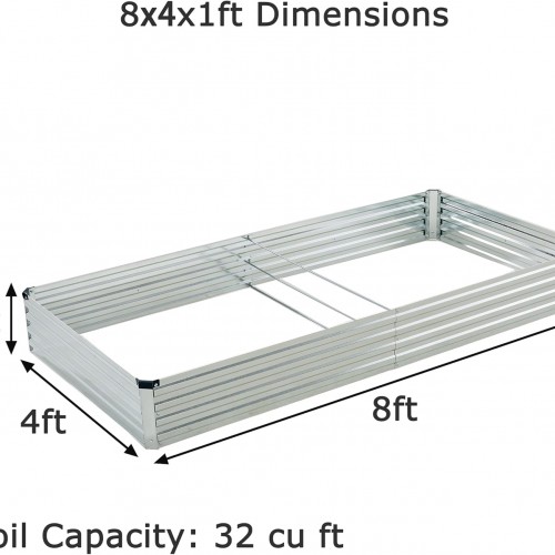 - BEGIN YOUR GARDEN JOURNEY: This 8x4x1ft galvanized raised garden bed has all the needs in gardening! Thickened sheets and durable structure build a ideal environment for vegetables or plants. Also there are multiple sizes and colors you can choose to fit your gardens!