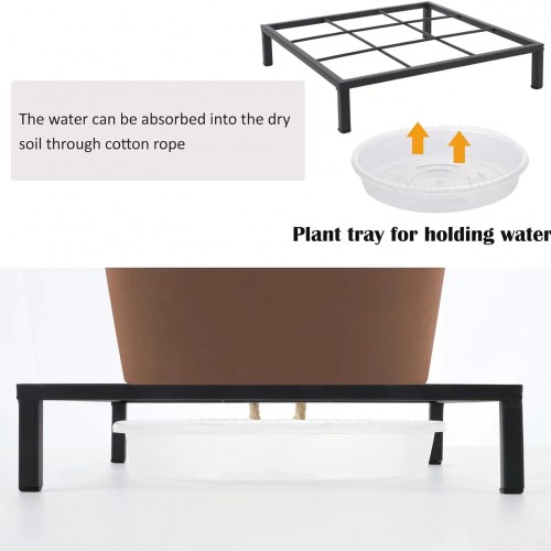 9.8″ Metal Heavy Duty Potted Plant Stand Flower Pot Holder with Saucer Indoor Outdoor Rustproof Iron Garden Container Square Supports Rack for Planter ,2 Pack(iron color )