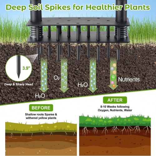 Aerator Lawn Tool: Sharp 14 Iron Spikes, Automatic Dirt Leaf Cleaning, Manual Lawn Aerators with Ergonomic T-Handle for Lawn Yard Garden Patio Soil Loosening Grass Aerating