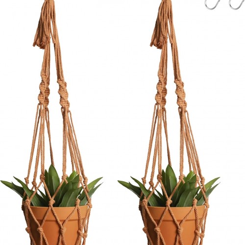 Artilady Hanging Planter for Indoor Plants Macrame Plant Hanger Large Hanging Plant Holder Brown Plants Basket White Rope Boho Original Wall Decor