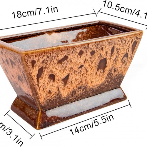 ARTKETTY Succulent Pots – 7 Inch Large Plant Pot with Drainage, Shallow Ceramic Bonsai Pots Succulent Planters for Indoor Outdoor Plants, Modern Cactus Planter Decorative Home Office