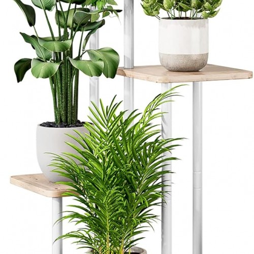 AZERPIAN Plant Stand 4 Tier Indoor Metal Flower Shelf for Multiple Plants Corner Tall Flower Holders for Patio Garden Living Room Balcony Bedroom, Black oak
