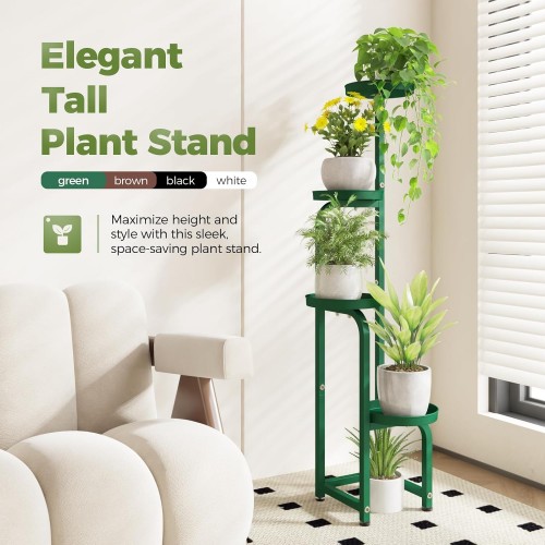 Bamworld Corner Plant Stand Indoor Outdoor, Tall Metal Flower Pot Stands for Multiple Plants, 4 Tier Green Heavy Duty Plant Shelf for Patio Garden Balcony Living Room Bedroom(Patent Design)