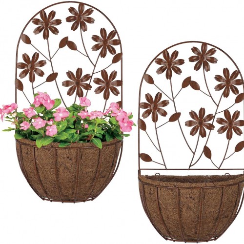 - Set of 2 Wall Planters: These half round wall planters come with coconut fiber liners, and the frames feature that two hummingbirds fly among the morning glory. The natural patina appearance nicely complements any decor or color scheme.