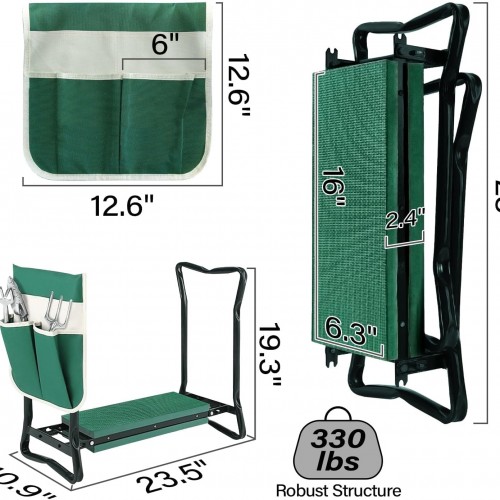 - Are you tired of muddy and achy knees, whilst tending to your garden? Our garden kneeler will support your knees and even keep them clean, thanks to the soft yet firm, Eva foam padding. Once you’ve completed the gardening, flip over your kneeler, and you’ll have a convenient and comfortable seat to admire your hard work. The max weight is 330lbs.