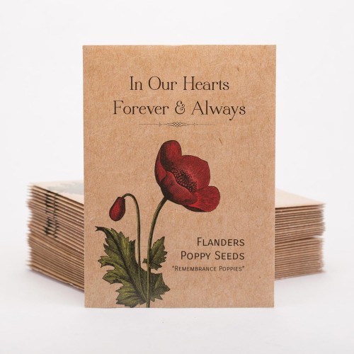 - RED FLANDERS POPPIES: Poppies The elegant remembrance poppy design and craft look of this packet gives it a vintage feel. Poppies have historically been used as a flower of remembrance and your recipients can think of a loved one all throughout their blooming season.