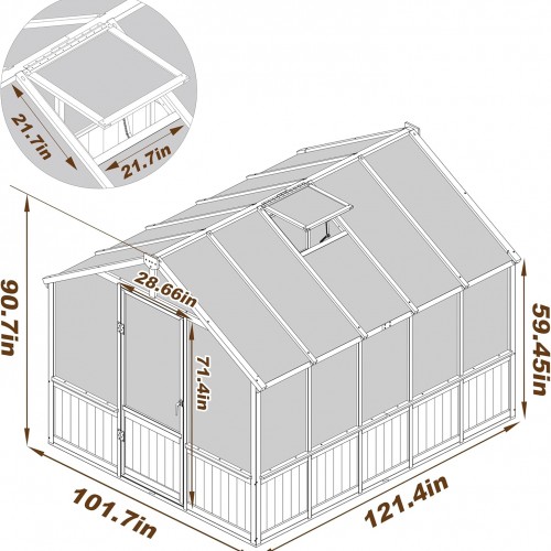 BlueWish 8×10 FT Greenhouse Kit, Wood Greenhouses with 6MM Polycarbonate Panel, Green House with Adjustable Vent & Lockable Door, Walk-in Greenhouse for Outside, Garden, Backyard