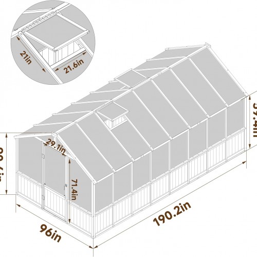 BlueWish 8x16FT Wood Greenhouse, Greenhouses with Cedar Frame, 6MM Thick Polycarbonate Panel, Wooden Green House with Adjustable Vent, Greenhouse for Outdoor, Patio, Garden, Backyard