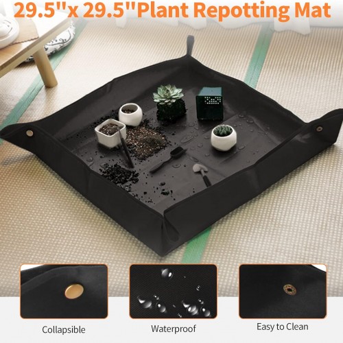 - 【Plant Repotting Mat】Size: 26.8″ x 26.8″. This collapsible garden mat is made of oxford, which is waterproof, stain-resistant, abrasion-resistant, and reusable. It is great for watering, pruning, and transplanting bonsai trees on your lawn or patios.