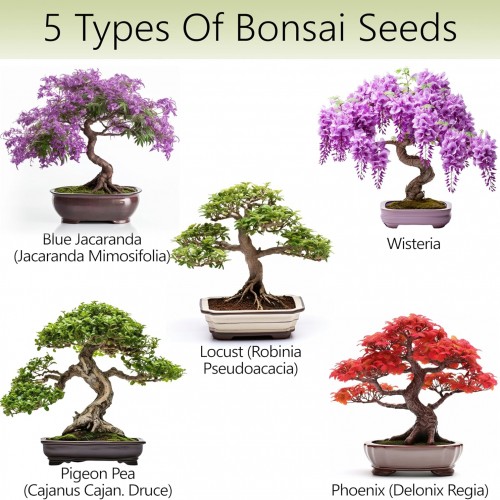 - BONSAI TREE STARTER KIT – With seeds of Avergo’s most popular bonsai mini tree Wisteria, Flame tree (Delonix Regia), Blue jacaranda (Jacaranda Mimosifolia), Pigeon Pea, and more