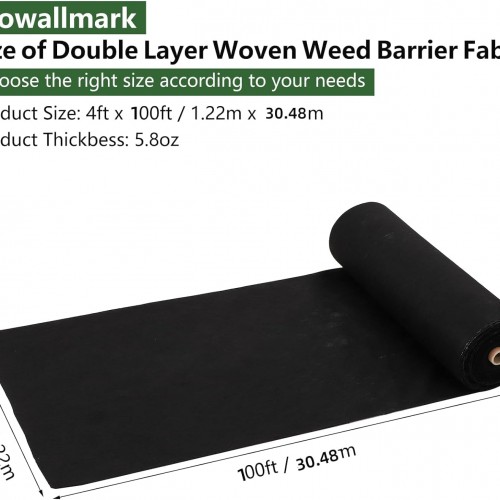 - High Strength &Durability: Broadfashion 5.8oz heavy duty landscape weed barrier fabric, made of tightly woven polypropylene fabric needle which punched with UV-stabilized. 98.7% opaque to light, Prevents weed seeds buried in the soil beneath from sprouting. The durable weed blocker fabric will highly increase your productivity and Economic benefits. Size: 4 x 100 ft / 1.2 x 30.5 m.