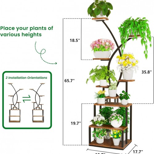 BTDVR X-Shaped Metal Plant Stand Indoor with Grow Lights, 9 Tiered Large Plant Shelf Display Rack Holder for Indoor Plants, Multi-Purpose 65″ Tall Plant Stands for Home
