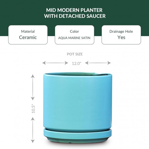 Ceramic Mid Modern Planter Pots with Detached Saucer – Indoor/Outdoor Plant Pots with Drainage Hole