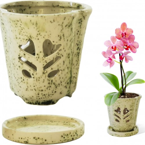 - [ Breathe Freely and Drainage ] Orchid pot have multiple ventilation holes carved through the sides and drainage holes at the bottom to help orchid roots breathe and grow healthily.Orchid pots with attached saucers can collect excess water to keep your planting area clean.