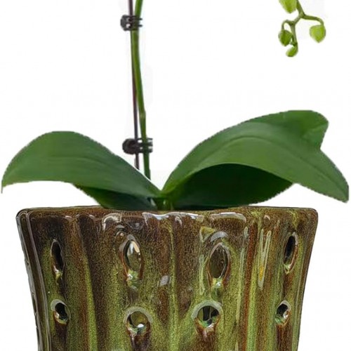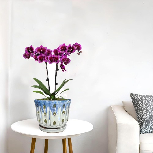 Ceramic Orchid Pot with Drainage Hole 6” Orchid Planter (Blue Cover White)