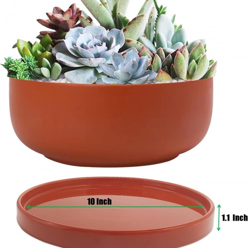 Ceramic Plant Saucer Pot Tray 10.7 Inch, Planter Saucers 6 7 8 9 10 11 12 15 Inch, Durable Sturdy Flower Drainage drip Water Tray for Glazed Pots Base (10.7Inch- Red Terracotta)
