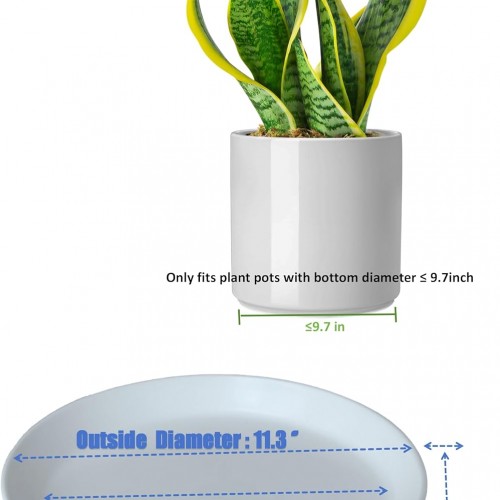 - Dimensions of Tray 10 Inch : plant saucer 10 inch, top diameter 11.3″ , inner diameter 9.7″, with a height of 1.8″, suitable for planters with bottom diameter less than 9.7 inches.