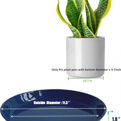 - Dimensions of Tray 10 Inch : plant saucer 10 inch, top diameter 11.3″ , inner diameter 9.7″, with a height of 1.8″, suitable for planters with bottom diameter less than 9.7 inches.