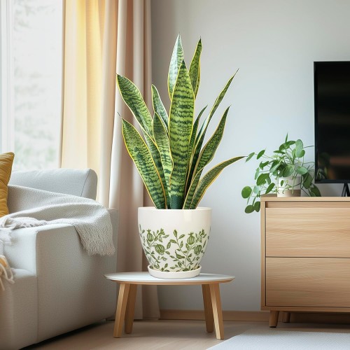 Ceramic Planter – 8.2 Inch Plant Pot for Indoor Outdoor Plants, Boho Round Ceramic Flower Pot with Drainage Hole and Saucer, Gifts for Plant Lovers, Home Garden Apartment Decor, White