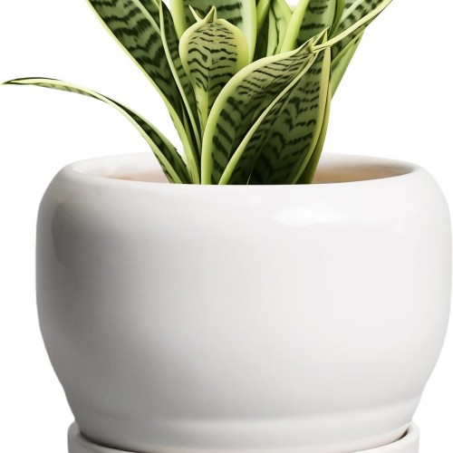 Ceramic Pot for Plants – 8 Inch Plant Pot for Indoor Plants Outdoor Ceramic Planter Large Flower Pot with Drainage Hole and Saucer for Home Garden Decor Gray