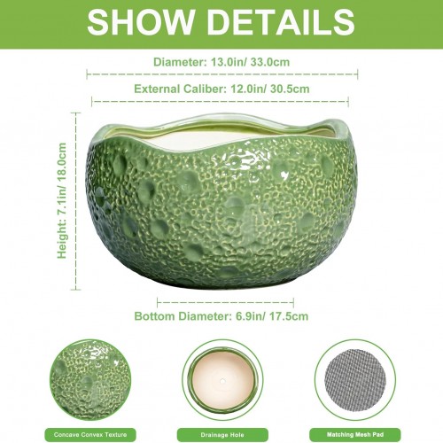 Ceramic Pots for Plants – 13 Inch Large Bonsai Pots Indoor Outdoor, Round Plant Pot with Drainage Hole, Decorative Flower Pot, Modern Unique Planters, Patio Decor, Plant Lover Gifts, Green