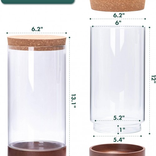 - Terrarium Plant Container Included: Includes a cylindrical glass container, a solid wooden base, and a cork lid. (Note: Plants are not included.)