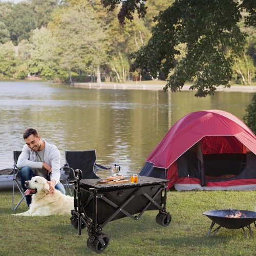 Collapsible Foldable Wagon Cart with Big Wheels and Tabletop, Large Capacity 440Lbs Folding Utility Wagon Carts for Sand, Beach, Camping, Shopping, Sport (Black)